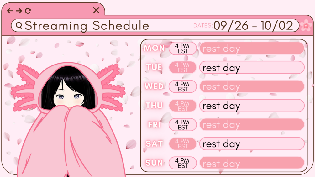 I also upload free & paid vtuber assets (blanket, bed, eyeglasses, holiday themes, etc.) / twitch resources (panels, overlays, chat overlay, schedule templates, etc).